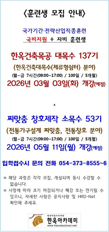 대목수 과정 개강 시기